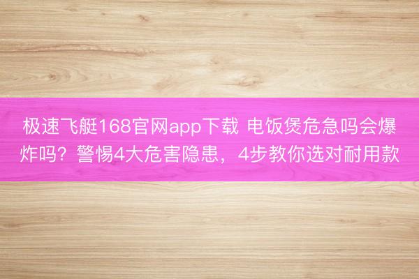 极速飞艇168官网app下载 电饭煲危急吗会爆炸吗?警惕4大危害隐患,4步教你选对耐用款一、导语:电饭煲虽方便,潜伏风险抨击冷落 每天烧饭、熬粥、炖汤,电饭煲(别名电饭锅)早已成为当代家庭厨房的“刚需担当”,它不仅开脱了双手,还能精确截止烹调时辰,让竭力的东谈主们松弛享受热乎饭菜。 但看似安全的小家电,却可能荫藏着不为东谈主知的风险。市面上不少商家为了霸占廉价商场,偷工减料使用劣质材质,比如用不相宜食等级圭臬的塑料